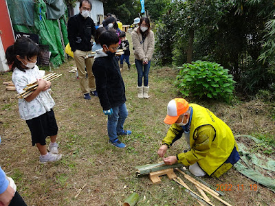 焼き芋をしている間に、竹炭焼きの竹の準備をしました